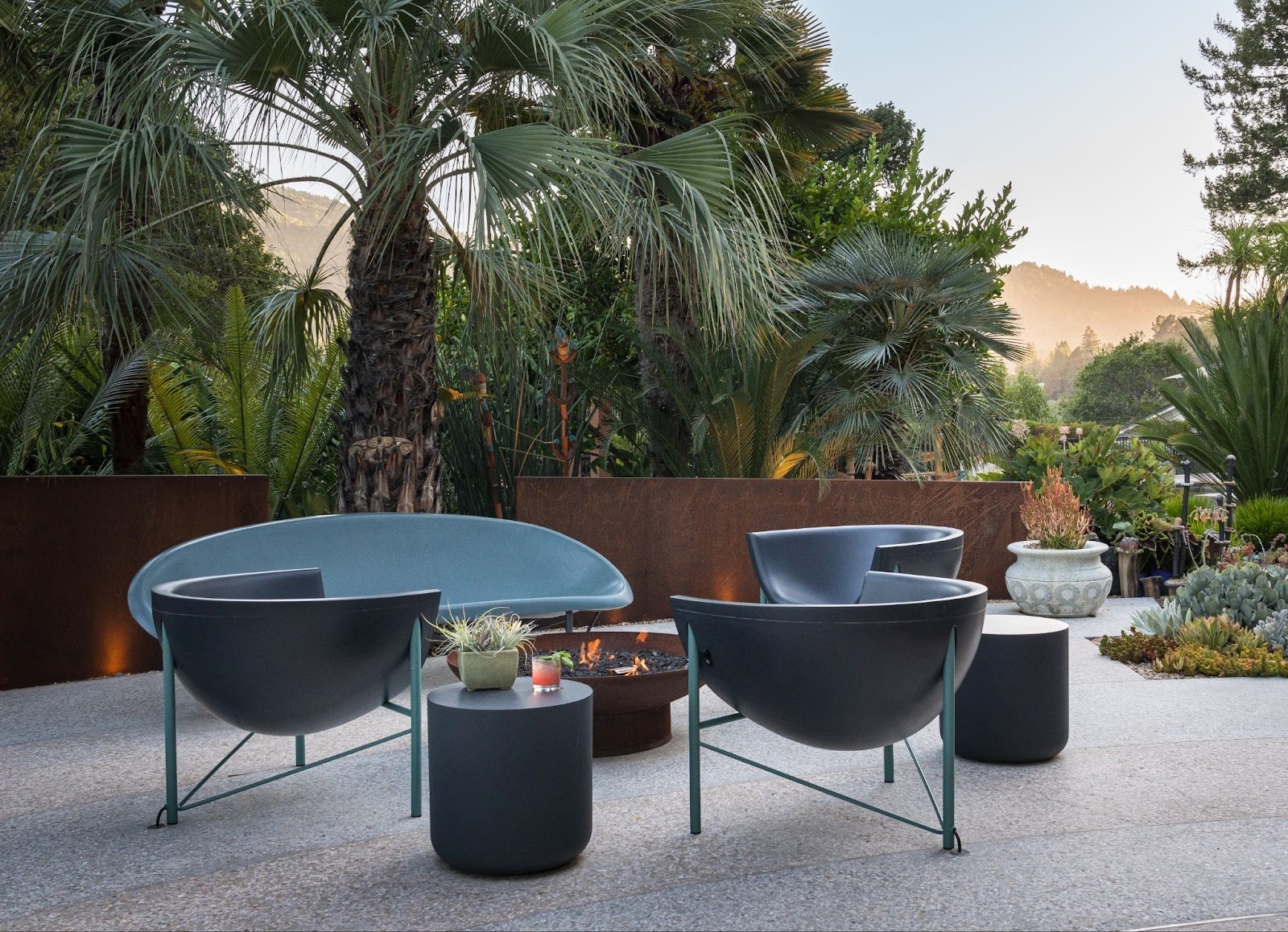 A project by landscape designer Julie Rootes, featuring our Helios Chairs with in-slab conduit cord management.