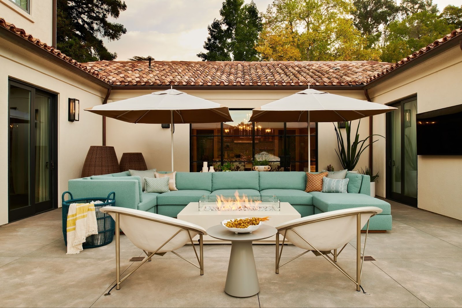 For covered patios or areas where you plan to have an outdoor rug, you can run the cord underneath so it is out of sight and doesn’t pose a trip hazard.